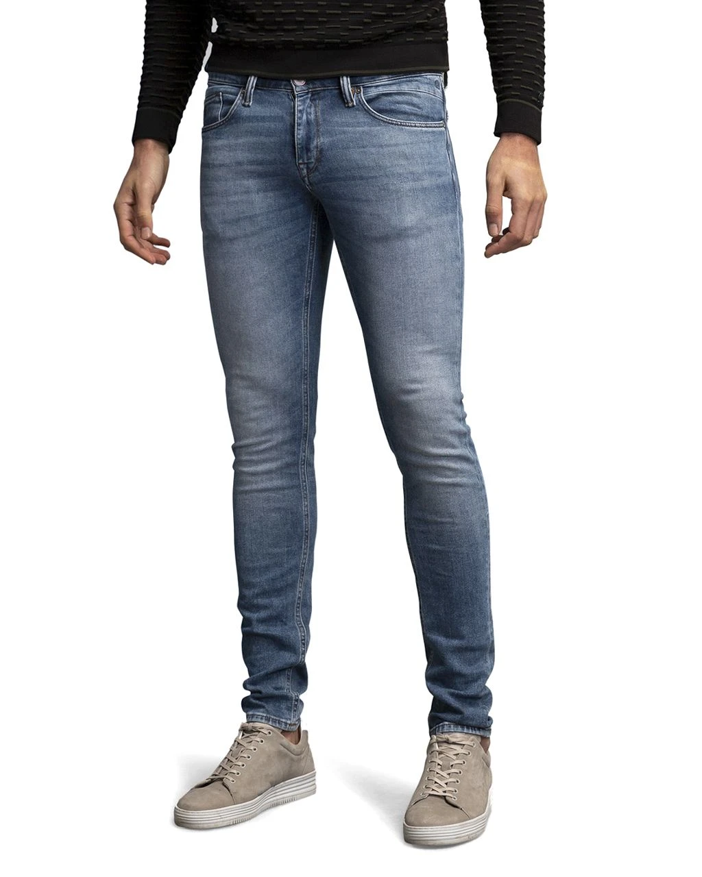 Deze jeans van Cast iron heeft een superslim fit pasvorm en is gemaakt van een erg zachte, blauwe stretch denim. De subtiele, lichte wassing zorgt voor een mooi contrast in de k…