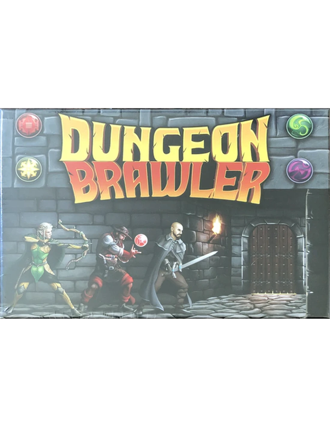 Dungeon Brawler takes the dungeon crawl game genre and mashes it with side-scrolling beat ’em up brawler arcade games from the 80’s and 90’s. Players each control a hero, arrange them in a formation, and prepare for the oncoming waves of monsters, traps, treasure, etc. If they can survive this automatically-advancing onslaught, then they win as a team. This is not your father’s “move-and-attack” dungeon crawler: by combining deck-building elements with a blazingly fast “conveyor belt” mechanic, this game has deep tactics, but plays incredibly quickly.