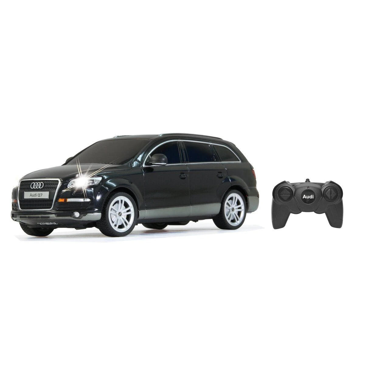 Deze Audi Q7 is een speelgoed RC auto van het populaire merk Jamara. Deze Audi Q7 is een stoere SUV voor binnenhuis welke is uitgerust met werkende LED verlichting welke branden tijdens het rijden. De auto heeft een maximale snelheid van circa 9 km/h. De zeer robuuste en innovatieve bouw van deze speelgoed auto zorgt er voor dat je ontzettend veel plezier aan deze auto gaat beleven. De auto rijdt op 3 AA batterijen welke apart verkrijgbaar zijn. De afstandsbediening werkt op 2 AA batterijen die eveneens apart verkrijgbaar zijn. Let op: het betreft een speelgoed auto waarvan maar een beperkt aantal onderdelen te verkrijgen zijn.